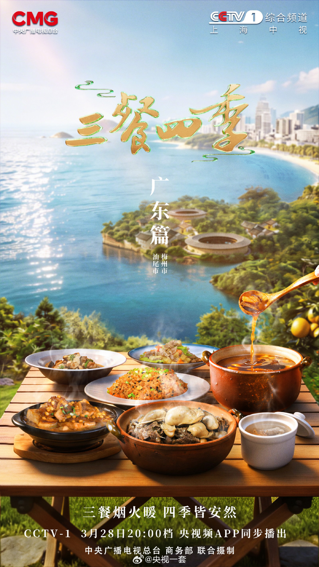 大海之滨,汕尾将千年的文化交融,酿成独一份的海陆丰滋味;云岭深处,梅州把客家人世代守护的迁徙智慧,化作餐桌上的山川风物。3月28日20点档,关注CCTV-1综合频道,三餐四季走进广东汕尾与梅州;@央视频 同步播出,敬请关注!