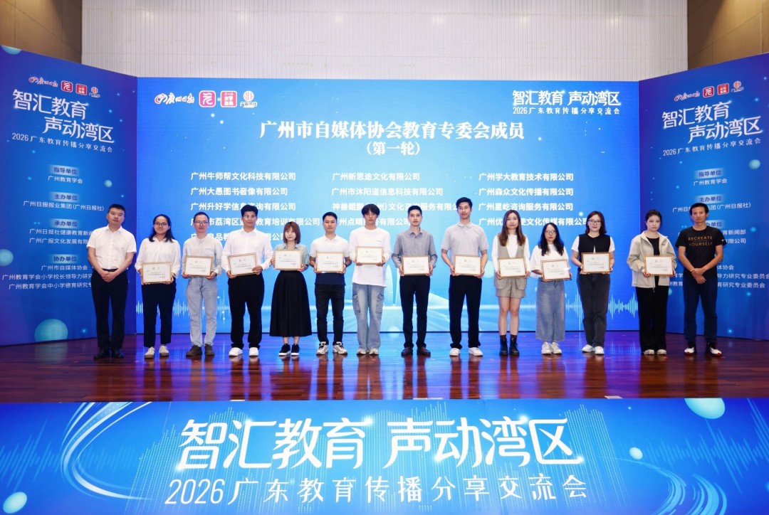 活动现场,广州市自媒体协会教育专委会正式成立。该专委会由市委网信办指导、广州广报文化发展有限公司牵头运营,面向教育类自媒体、教育机构、MCN机构等开放吸纳成员,旨在凝聚行业力量、强化内容自律、提升传播效能,共建清朗网络空间。活动接着举行了专委会主任、秘书长、副主任聘书颁发及首批成员单位授牌仪式。