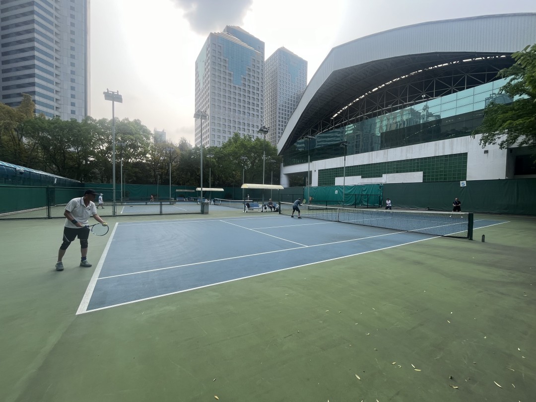 市民在天河体育中心网球场内打网球