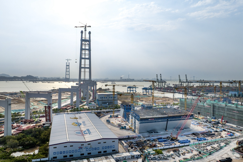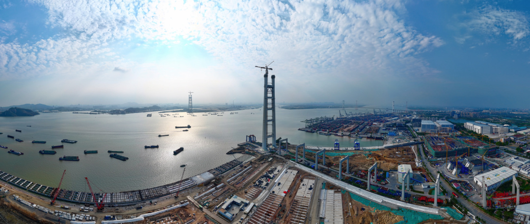 2025年4月2日,狮子洋大桥建设高度突破100米