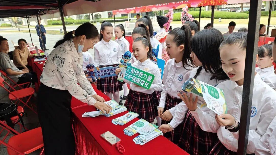广州市“扫黄打非”形象代言“清风侠”IP文创周边格外受到现场小朋友们的青睐,来自黄埔区凤凰湖小学的学生们结束演出就涌入“扫黄打非”专区,工作人员通过发放宣传折页普及“护苗”“净网”知识,传递“绿色阅读、文明上网”的健康理念。在街道垃圾分类互动摊位,市民在趣味答题中学习环保新风尚。现场还有“大湾鸡”与小朋友们亲密互动,憨态可掬的模样引得大家争相合影。特别增设的“国防教育”展示区,打造了“历史+科技”双维度的红色教育场景,让孩子们在欢声笑语中种下了爱国强军的种子。