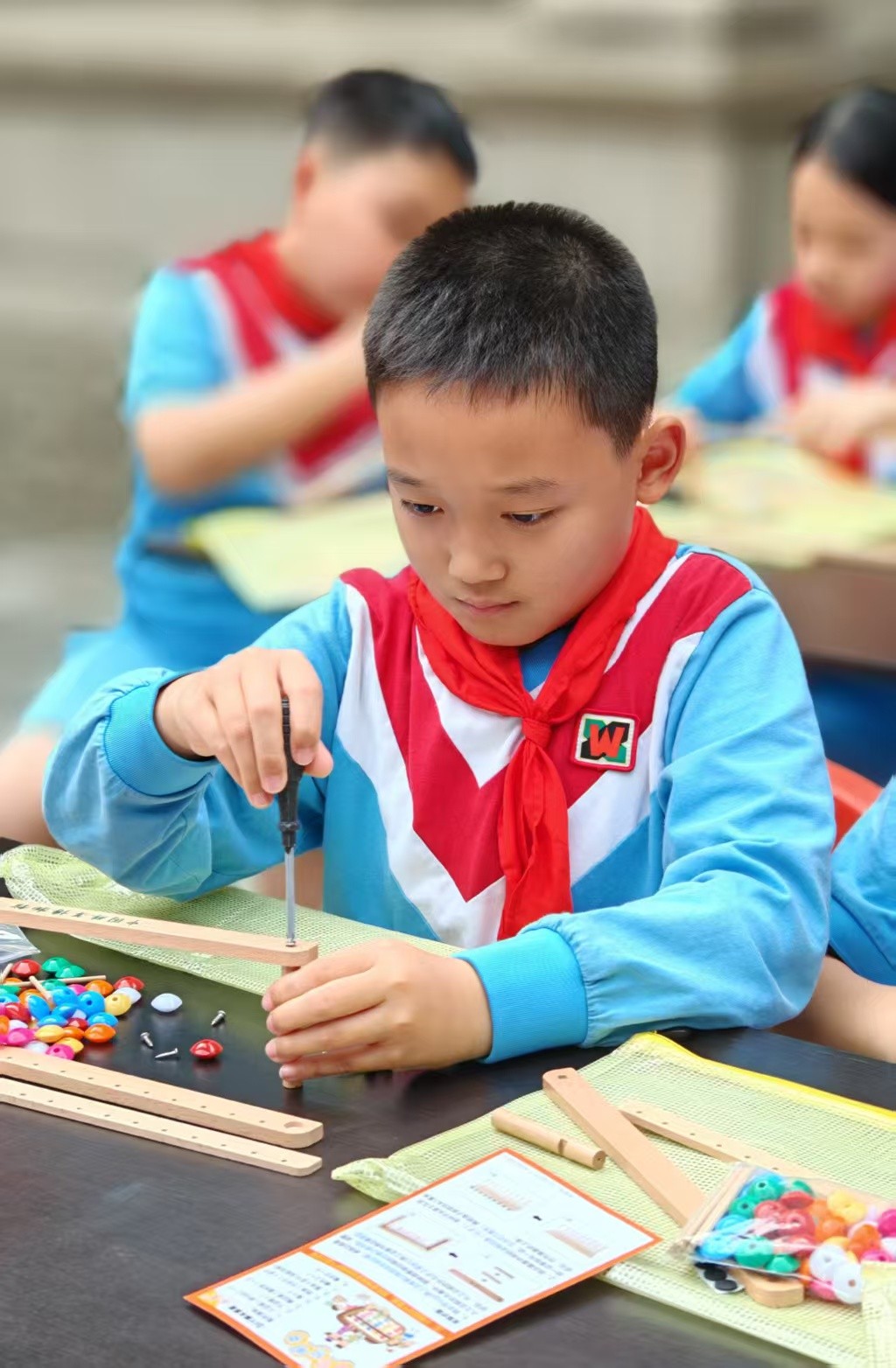 小学生们自己动手拼算盘