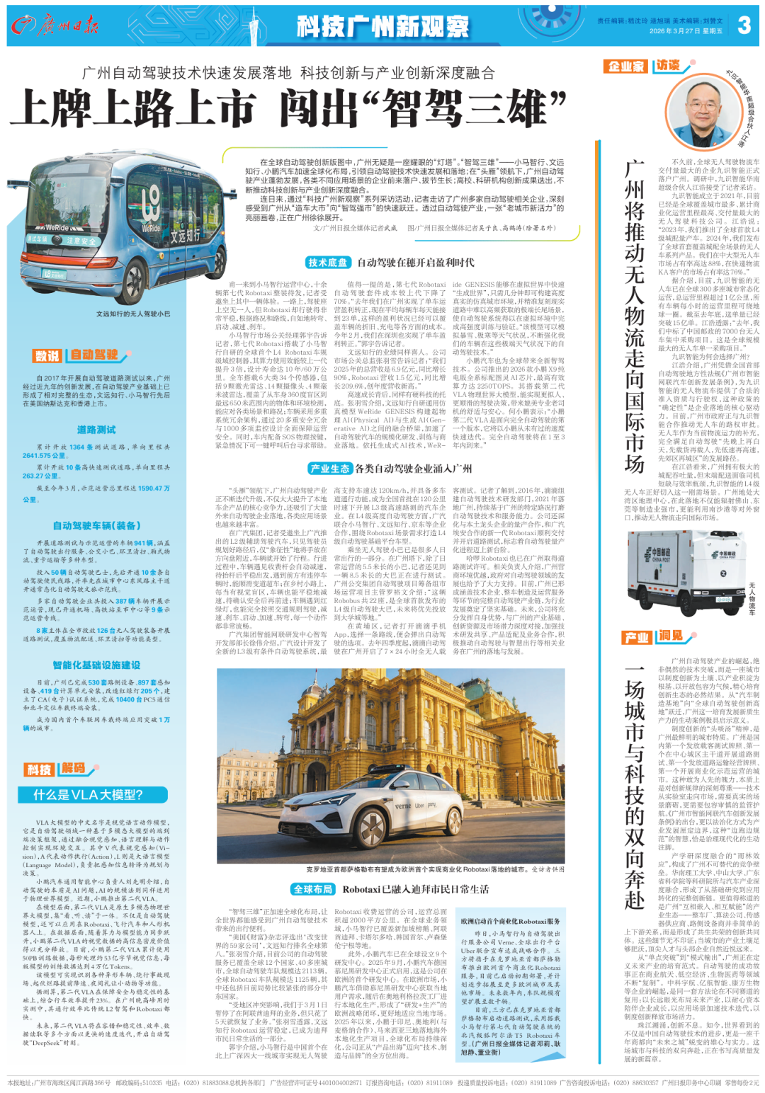 “智驾三雄”正加速全球化布局,让全世界都能感受到广州自动驾驶技术带来的出行便利。