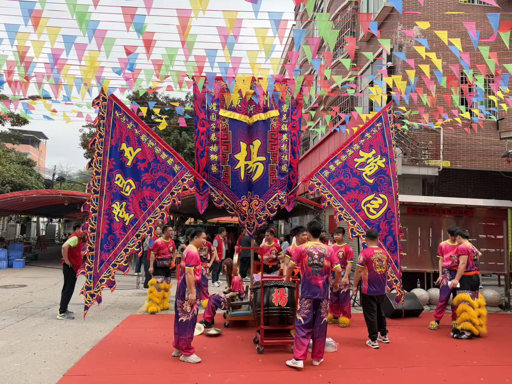 上午9点,工作人员身着统一服装上岗。按照理事会提前制定的流程,音响调试、厨房检查、收款登记,各小组分工明确。中午12点,工作人员和狮队队员简单用餐后,下午2点便准时到村口迎接各支狮队。