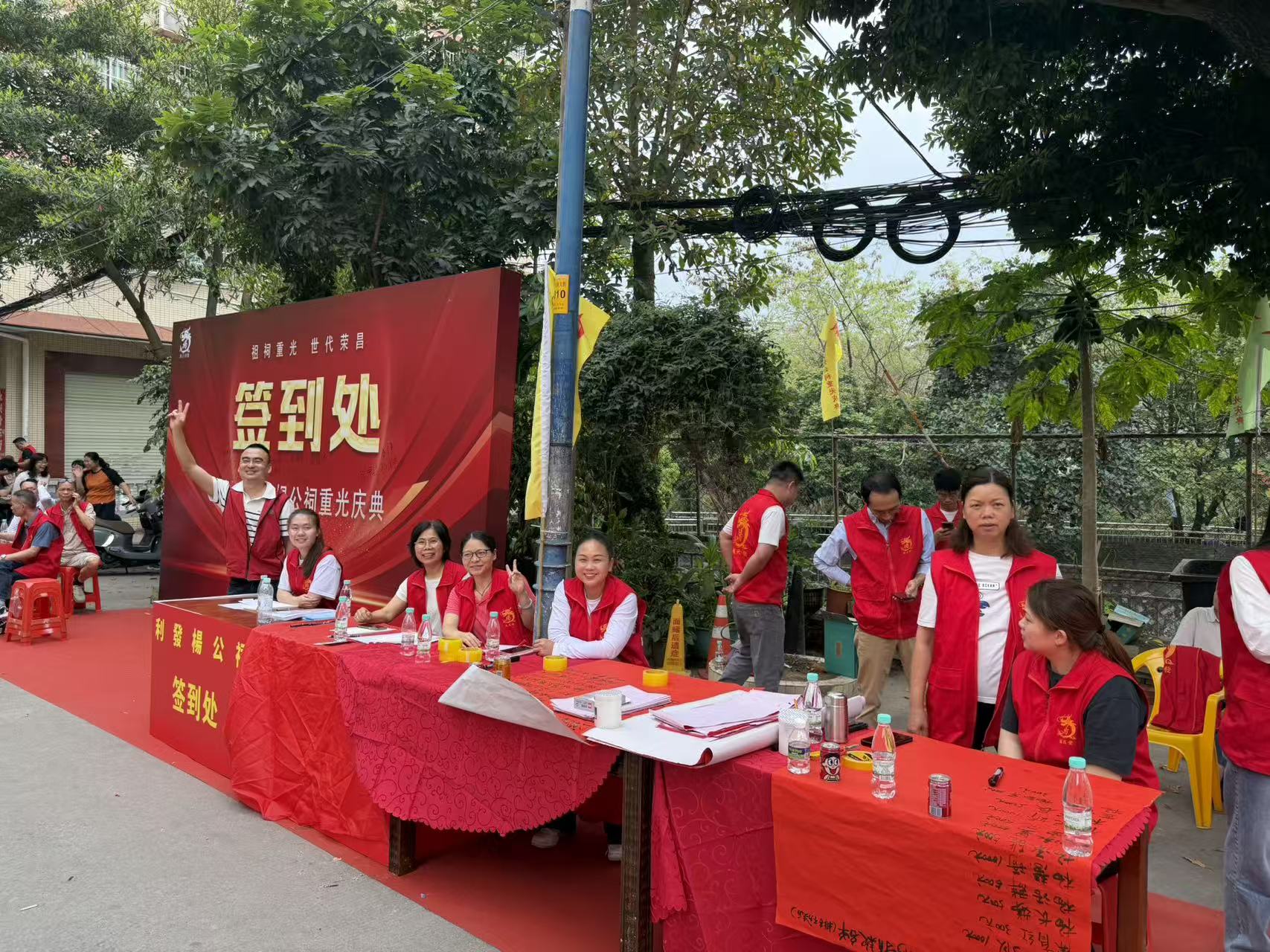 傍晚6点,晚宴开始。288围台、近三千余人围坐在一起。参与的不止杨氏族人,还有附近村落的乡邻、特邀的客家老乡、社区居民群众。晚8点,烟花燃放,人群散去后,工作人员开始打扫卫生,村道恢复原貌。整个过程按流程推进,节奏紧凑。一位参与组织的村民说道:“我们准备了很久,每个环节都有专人负责,不能乱。”
