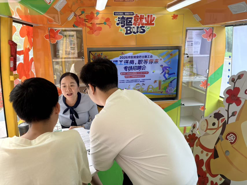 大厅配备无纸化招聘设备、AI智能招聘室、职业指导室,提供一对一精准服务;“湾区就业巴士”则化身“移动就业驿站”,车内设置现场面试、职业指导、直播带岗、政策宣传等功能区,搭配车外拓展摊位,扩大岗位供给。