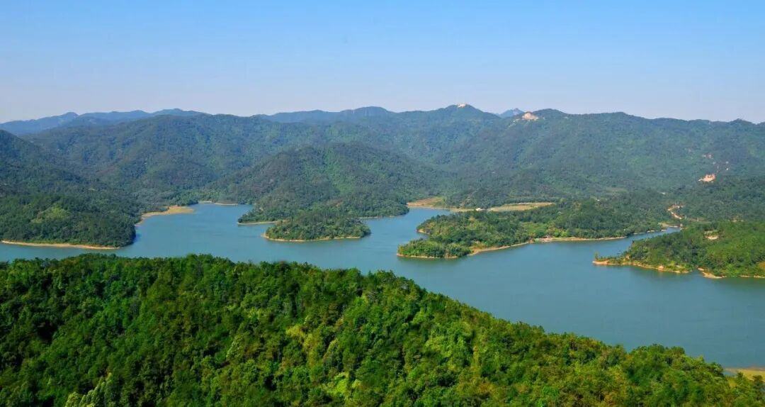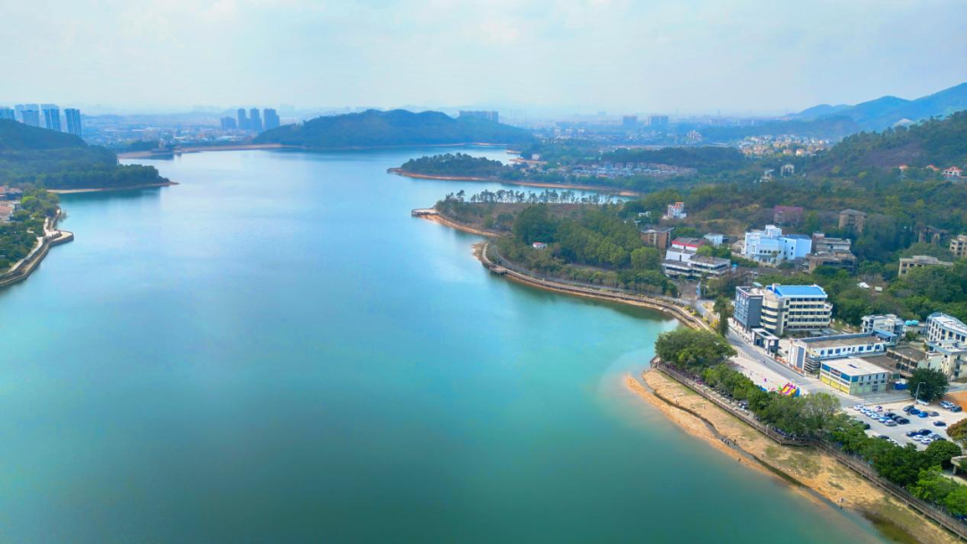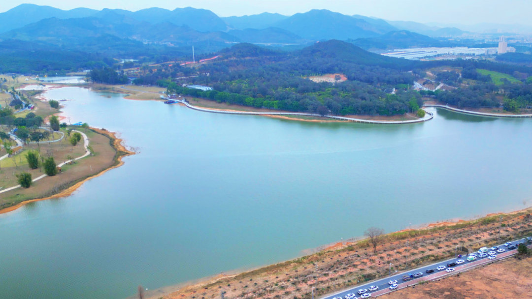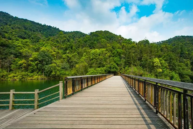 青山环绕着碧绿水库,环湖栈道依山而建,凉风习习,自带天然降温buff。