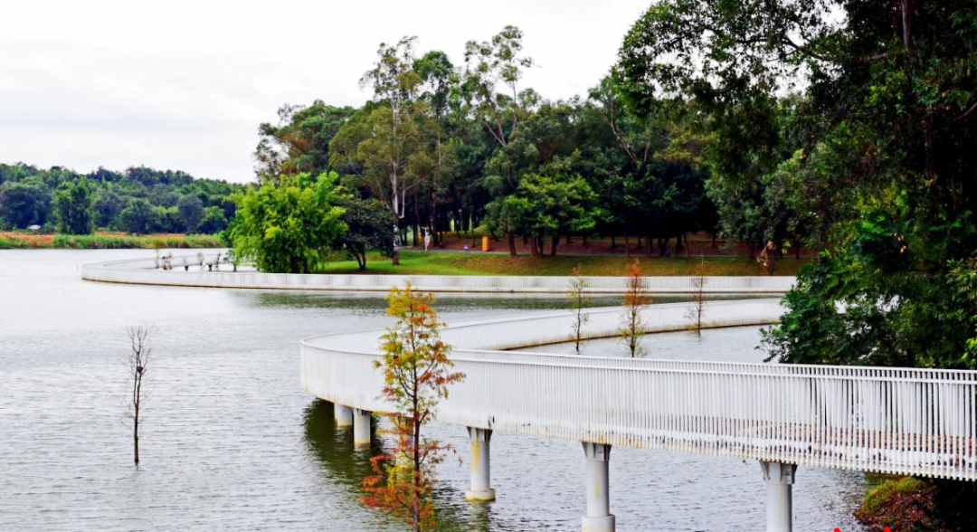 沿途串联起湖心岛、岭南园,白墙黛瓦的园林景致与澄澈湖水相映成趣。