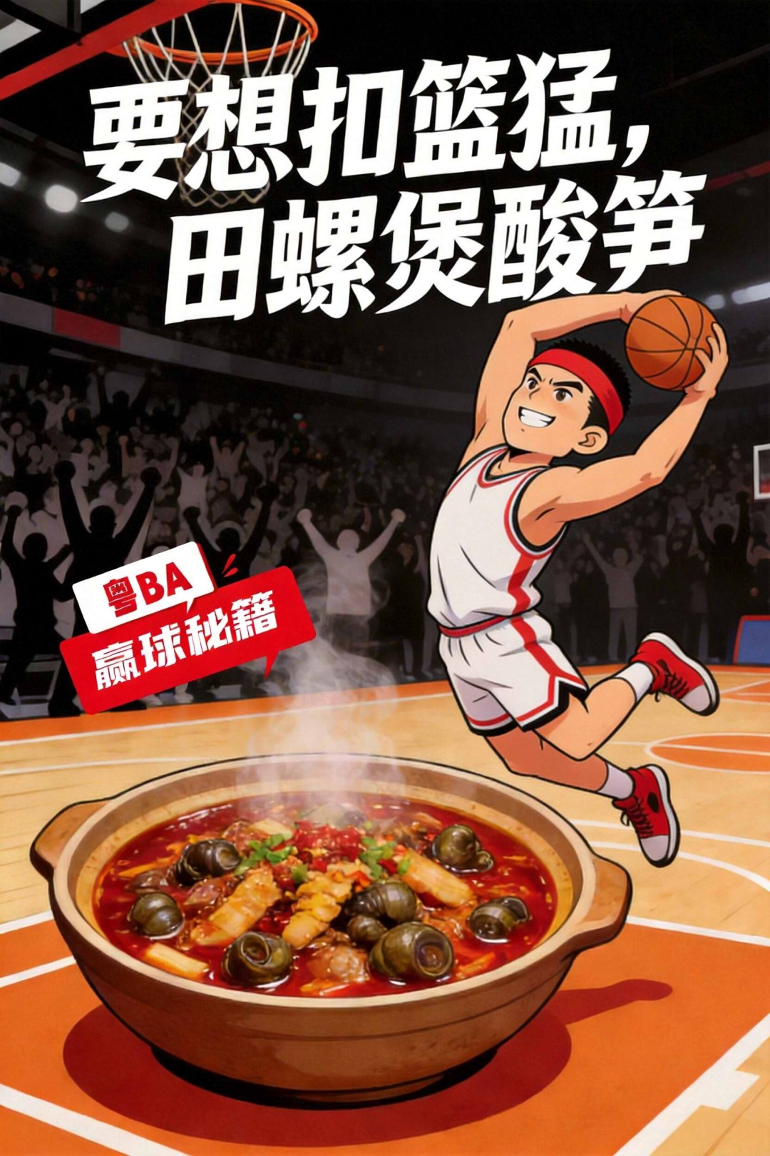 防守端的死缠烂打,则像极了那镬气十足的田螺酸笋煲。浈江、武江、北江由韶关大地万千河流汇聚而成,造就了无数山涧小溪。石缝里吸足地气的肥美螺肉,撞上酸爽脆嫩的笋干,再以紫苏、豆豉爆香提味,小火慢炖,层层透骨。吃这道菜,要的就是那份“唆”不干净决不罢休的“钻劲”。