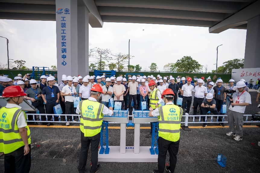 施工人员现场演示预制拼装工艺