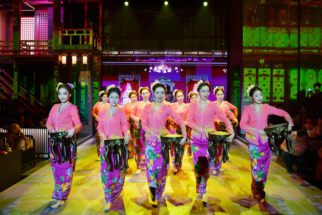 广州市黄埔区长洲岛上,广州首家全场景沉浸式海丝主题餐秀《海丝赋》向媒体提前揭开了这场穿越千年时空的文化盛宴面纱。该项目由黄埔文化集团与励丰文化联合打造,将于3月29日在黄埔区长洲岛隆平院士港开启试营业,一种集“餐饮、演艺、互动体验、数字艺术”于一身的新型文旅消费形态正在广州落地生根。图为广州首家全场景沉浸式海丝主题餐秀《海丝赋》。