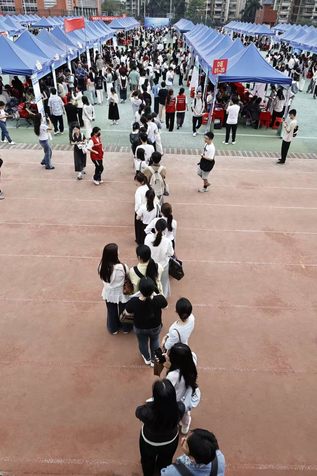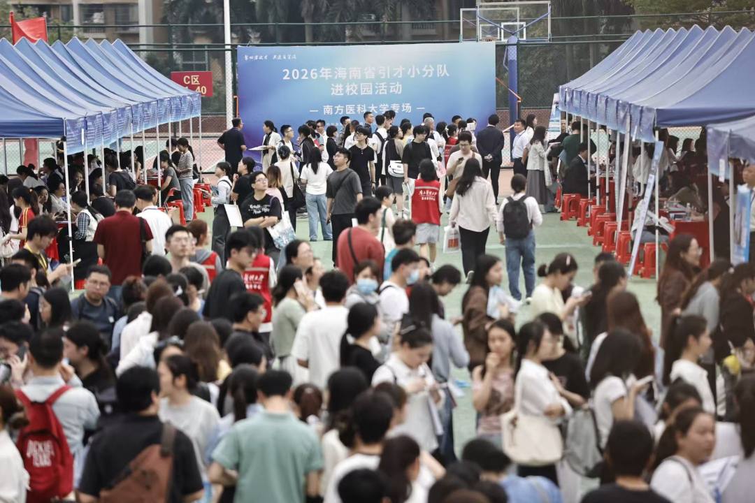 春日的南医校园热潮涌动,来自全国近两百所高校的毕业生,身着正装、手持简历,穿梭在各个招聘摊位前,渴望在这里开启医者征程。