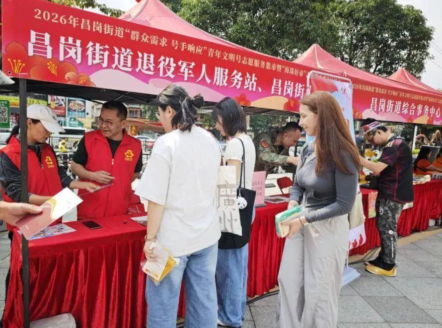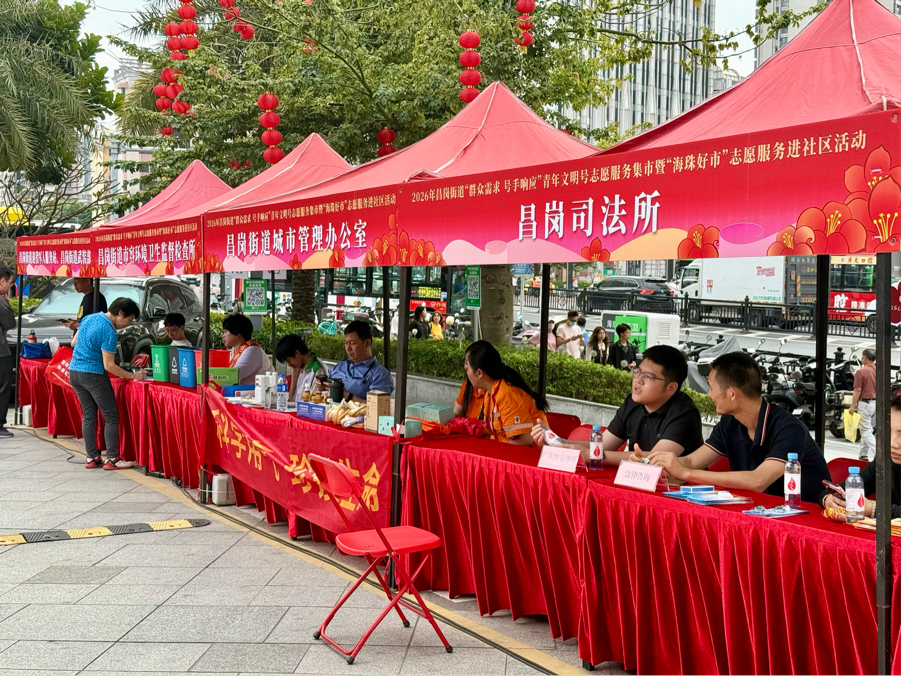 三月春风暖人心,雷锋精神代代传。3月26日,2026年昌岗街道“群众需求 号手响应”青年文明号志愿服务集市暨“海珠好市”志愿服务进社区活动在广东现代广告创意中心火热举行。