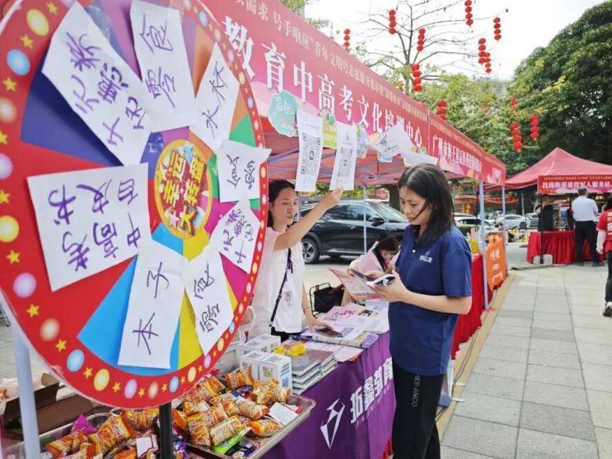 活动现场,有一抹“志愿蓝”格外亮眼,来自广东第二师范学院教师教育学院的学生志愿者们活跃在现场各处,他们或耐心引导居民体验互动项目,或积极协助进行政策解读。他们用热情与细致周到的服务,为活动注入了蓬勃的青春朝气。