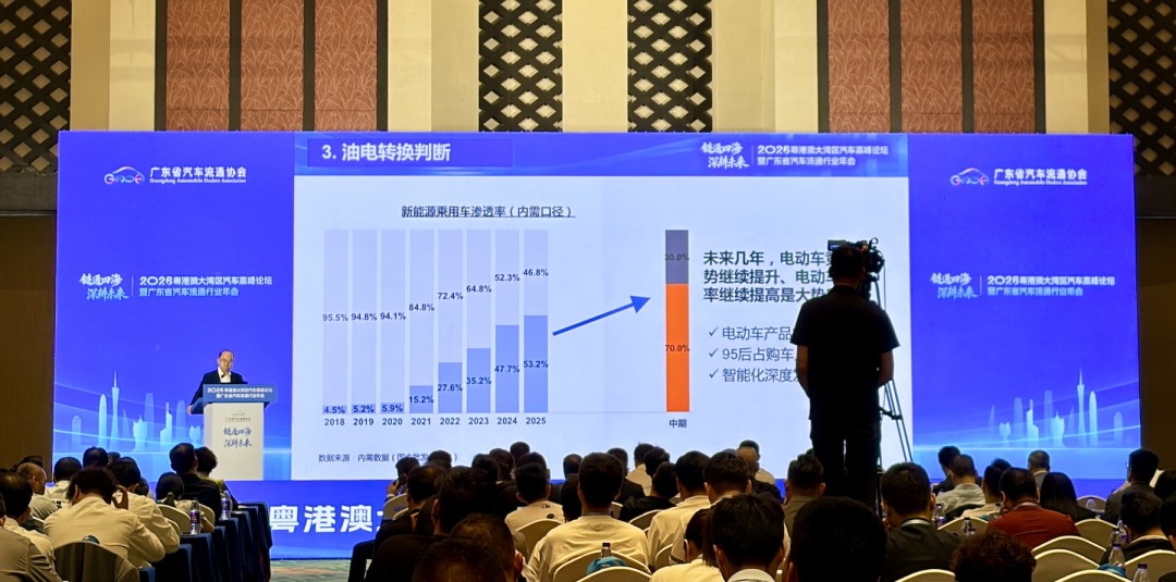 3月27日,由广东省商务厅指导、广东省汽车流通协会主办的“链通四海 深耕未来——2026粤港澳大湾区汽车高峰论坛暨广东省汽车流通行业年会”在广州举行。本届大会以“链通四海 深耕未来”为主题,国家级专家、行业专家、企业领袖在会上聚焦宏观政策导向、行业发展趋势进行了主题演讲,并共同探讨在“十五五”规划开局之年,粤港澳大湾区汽车行业的高质量发展与全球化新机遇。