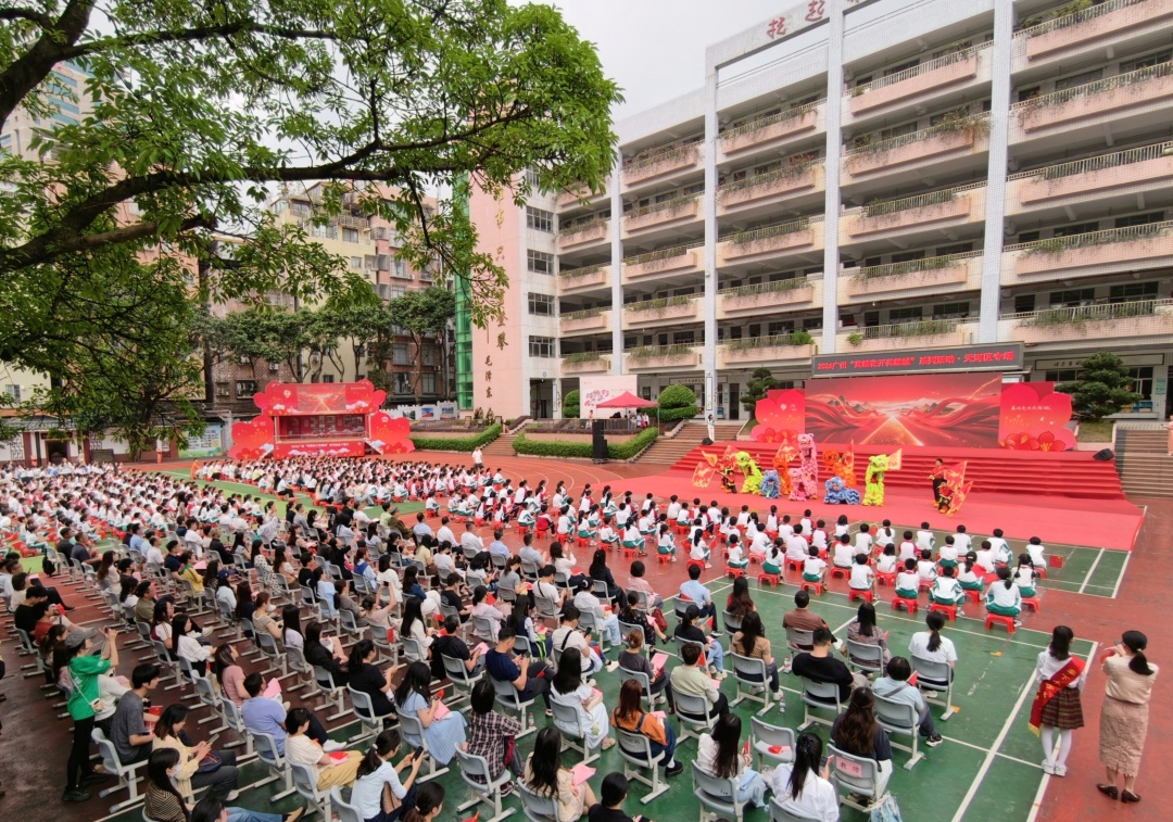 天河区各相关单位、各街道、各中小学的代表以及棠下小学师生1000多人在操场参加了本次活动。舞台上,棠下小学六年级学生孙子涵宣讲《芒果树下的红色传承》。当天活动中,棠下小学的逾百名学生还演出了大型原创舞台剧《永恒的旗帜,崭新的征程》。