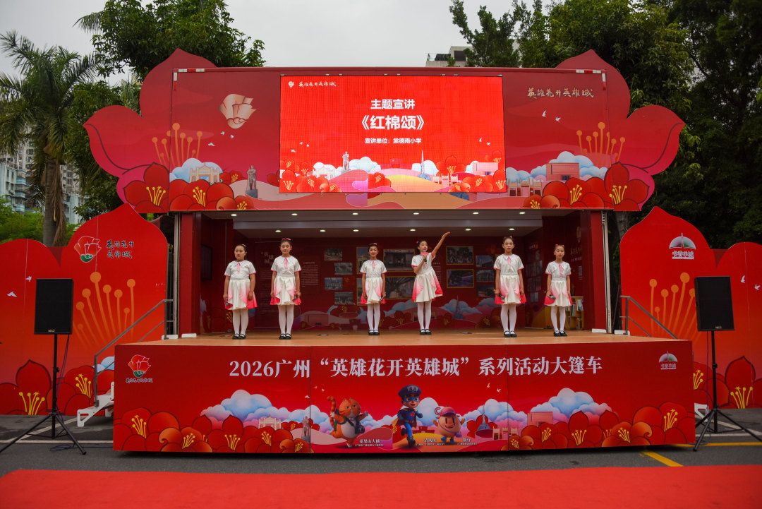信息时报讯(记者 李丹)3月27日上午,一辆绘有鲜红木棉花的大篷车开进广州市天河区棠下小学,停靠在见证伟人足迹的芒果树下。当天,由天河区新时代文明实践中心、中共广州市天河区委宣传部、信息时报社、天河区教育局、棠下街道党工委、棠下街道办事处主办的2026广州“英雄花开英雄城”大篷车巡展天河区专场活动在此举办。