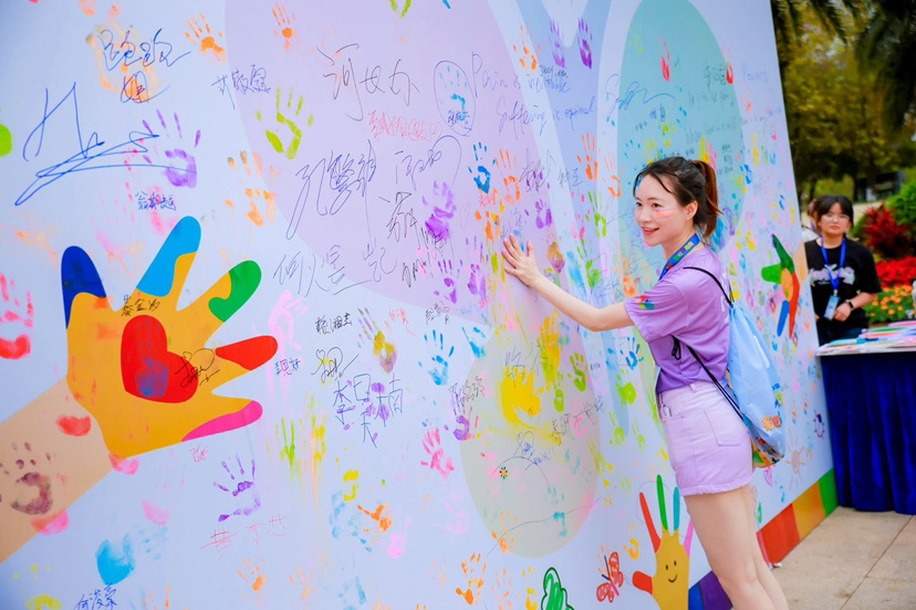 终点处设置的彩绘区和彩虹颜料区成为完赛后的热门聚集地。孩子们在脸上画上心仪的彩绘图案,在终点背景墙上按下五彩斑斓的手印,一面由数百个彩色手印汇聚而成的“彩虹墙”,不仅见证了亲子间的温情时刻,更凝聚了这场春日盛会的欢乐记忆。