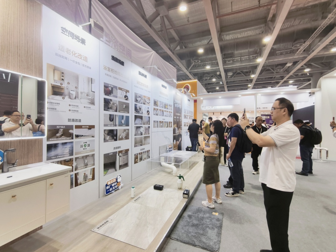 针对广州老旧小区厨卫防滑、设施不适老、改造周期长等民生痛点,九牧“省心焕家中国行·广州站”同步亮相展会。方案主打微创、快装、无损:卫浴防滑不拆砖,2小时快速提升安全系数;推出8小时蹲便改坐便、3小时地排改墙排,配套适老扶手、应急呼叫;厨房采用无尘切割、毫米级定位,并承诺“切坏包赔”,让市民改造更安心。