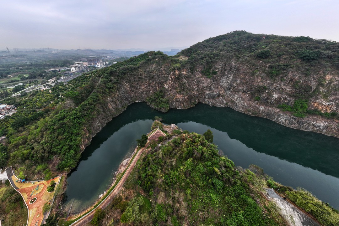 记者近日实地探访了位于增城仙村的五叠岭森林公园,见证了这片土地从伤痕累累的采石场到碧波荡漾的“碧湖仙境”的华丽转身。