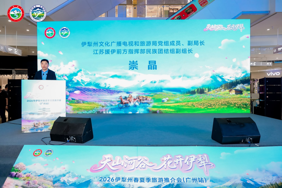 3月29日,“天山河谷 花开伊犁”2026年伊犁州春夏季文旅推介会(广州站)在羊城圆满举行。活动由江苏省对口支援新疆伊犁州前方指挥部主办、伊犁哈萨克自治州文化广播电视和旅游局承办,携伊宁市、霍城县等核心县市及那拉提景区,以雪山为约、花海为信,向粤港澳大湾区游客发出春日邀约,搭建起两地文旅交流合作的桥梁。