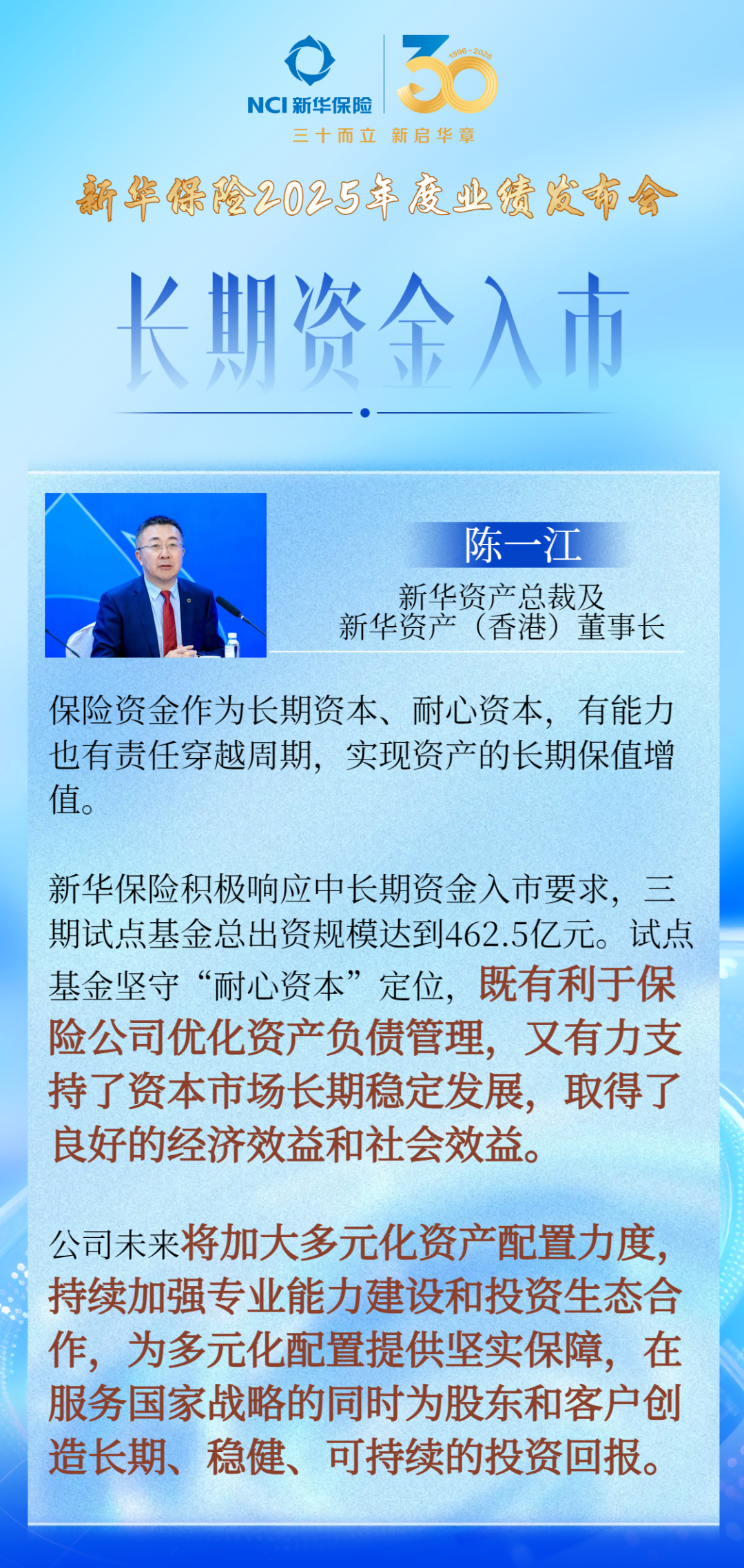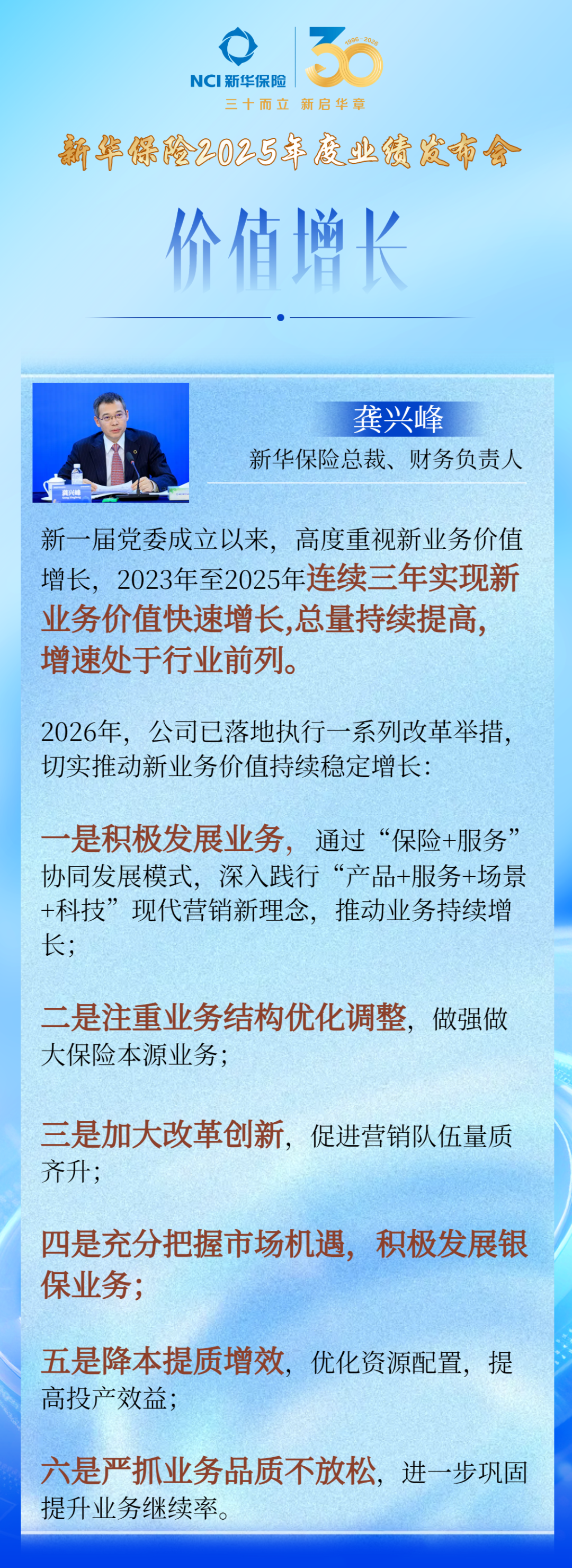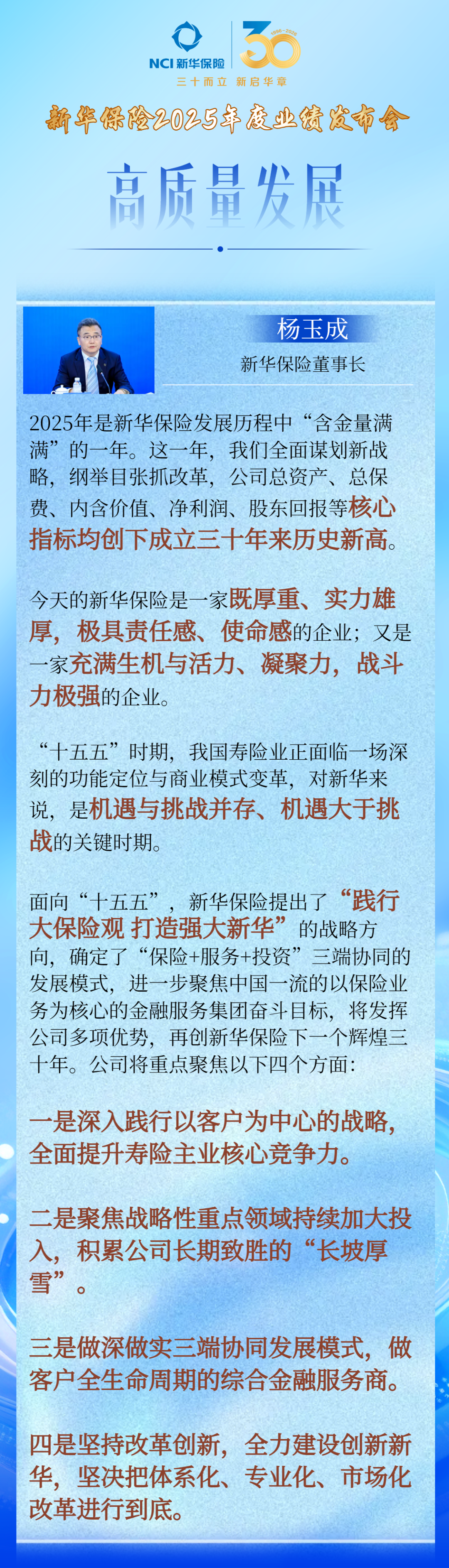 2026年,在“十五五”开局之年以及新华保险的“而立之年”,公司将如何继往开来、再创佳绩?让我们一起跟随以下关键词,了解这场“含金量满满”的发布会!
