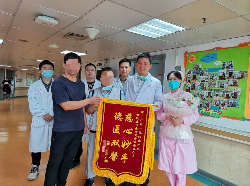 成功接受根治手术的患者为广医一院泌尿外科团队送来锦旗致谢。