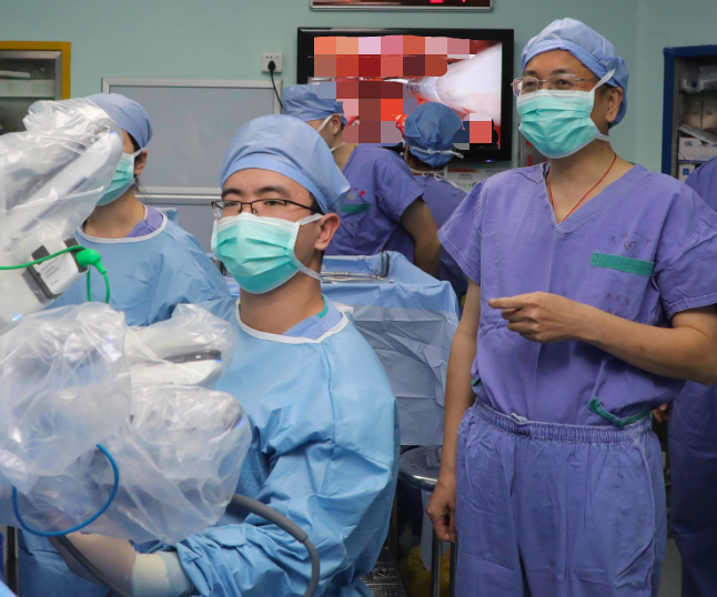 古迪在机器人辅助下为患者施行前列腺癌根治手术。