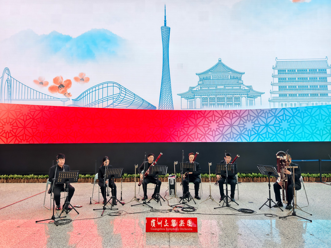 这个春天,广交不仅将古典音乐送到了景区,也送到了交通枢纽。2月2日,广交“双簧家族”走进白云机场T2航站楼,用木管的温暖音色抚慰行色匆匆的旅人。《卡门》组曲选段的旋律响起,几位外国旅客惊喜地相互示意;激昂的《西班牙斗牛士进行曲》引发了热烈的掌声。人们纷纷拿出手机记录下这趟旅程中最特别的瞬间。