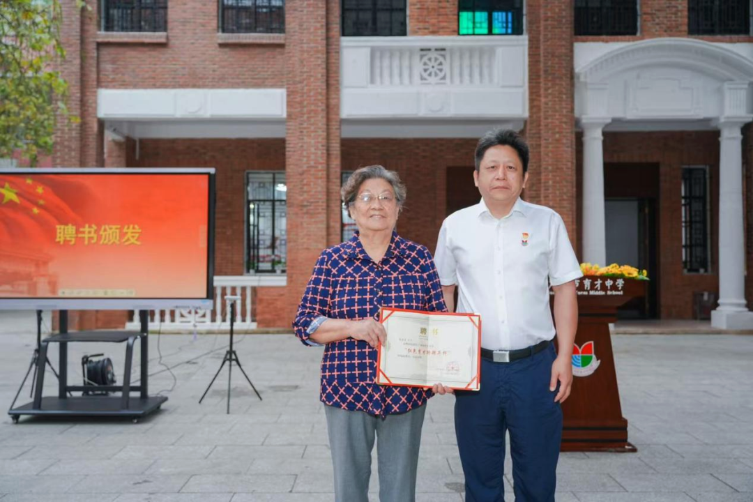 活动采用“现场沉浸+云端共享”形式,通过直播覆盖校内分会场及72个教学班,实现红色教育资源广泛共享。育才中学党委书记刘红为陈芳芳颁发“红色育才特聘导师”聘书。