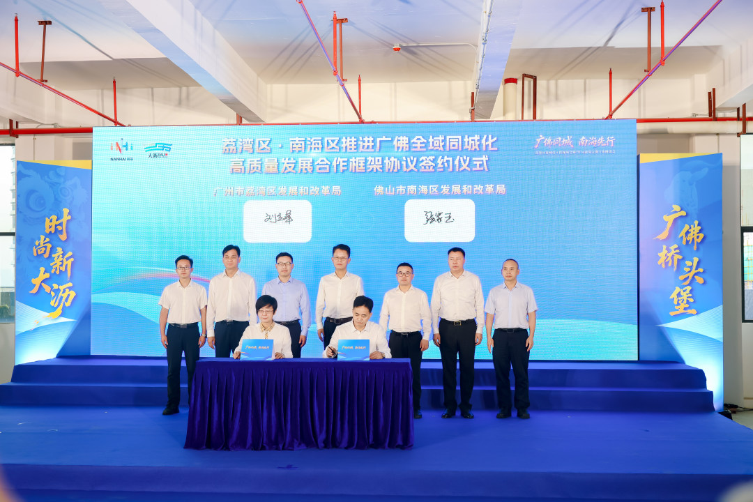 本次会议上,广州市荔湾区与佛山市南海区正式签署《推进广佛全域同城化高质量发展合作框架协议》,双方将在规划引领、两业融合、商圈共建、基础设施互联、文旅协同、公共服务共享、生态环境共治七大领域深化合作,推动广佛商圈从“地理相邻”迈向“功能相融”。紧随其后的广佛全域同城镇街融合共建启动仪式,让白云区金沙街道及荔湾区桥中、石围塘、茶滘、海龙5个街道与大沥镇结成发展共同体,延续协同根基,构建“区级统筹、镇街落地”的同城化发展格局。