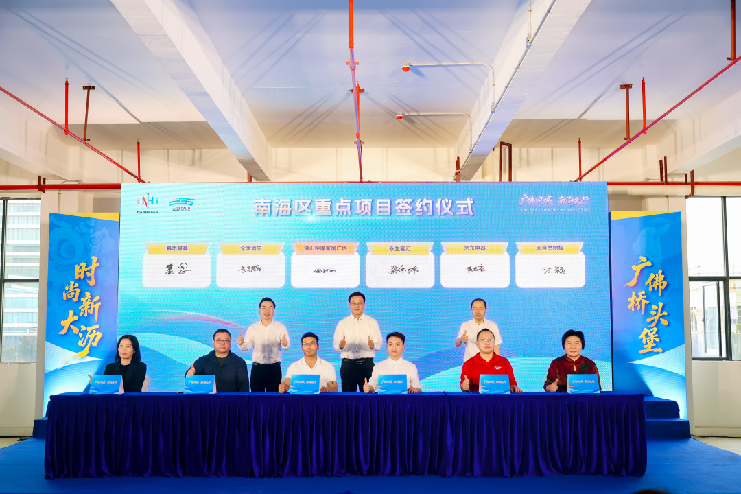 会上,重点项目签约环节亮点纷呈,大沥镇与钢材循环综合利用基地、丹桂独立储能项目、富轩门窗总部基地、裕田未来科技城二期、广佛环球美食荟5个南海区重点项目代表签约;大转湾全球五金建材市场、佛山钜隆家居广场、嘉洲广场也分别与合作方完成签约,项目覆盖先进制造、新能源、商贸流通、家居消费、新零售等多个领域,为商贸大沥建设筑牢坚实项目支撑。