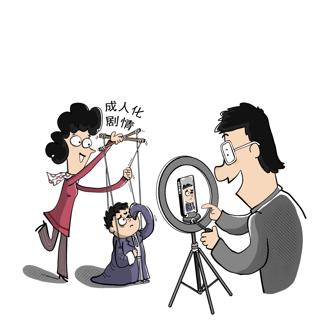 “重生小股神”“天才操盘手”“超能小学生”……近来,不再沉迷“霸总”“婆媳”的短剧,开发出“萌娃”这一新赛道——越来越多未成年人开始成为短剧拍摄片场的主角。然而,“萌娃”看似是主角,实则不过是将霸道总裁、豪门商战等老剧情套用到儿童身上,再利用“孩子的天真”与“成人的世故”制造反差感罢了,本质上仍是迎合观众猎奇或奇观消费。虽然儿童向来是影视领域的重要参与角色,但也要警惕将儿童“成人化”“商品化”的不良倾向。尤其是仍处于野蛮生长的竖屏短剧产业,在市场规范、儿童保护权益等方面,不妨先摸着长剧的石头过河。