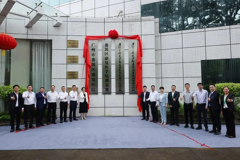 活动现场还举行了揭牌活动,番禺区健康管理中心加挂“广州医科大学附属第五医院番禺康复医院”“广州医科大学第五临床学院教学培训基地”“番禺区康复医学培训基地”牌匾;市桥医院加挂“广州医科大学附属第五医院康复医学临床学系与番禺区市桥医院(富华路院区)共建学科”牌匾。