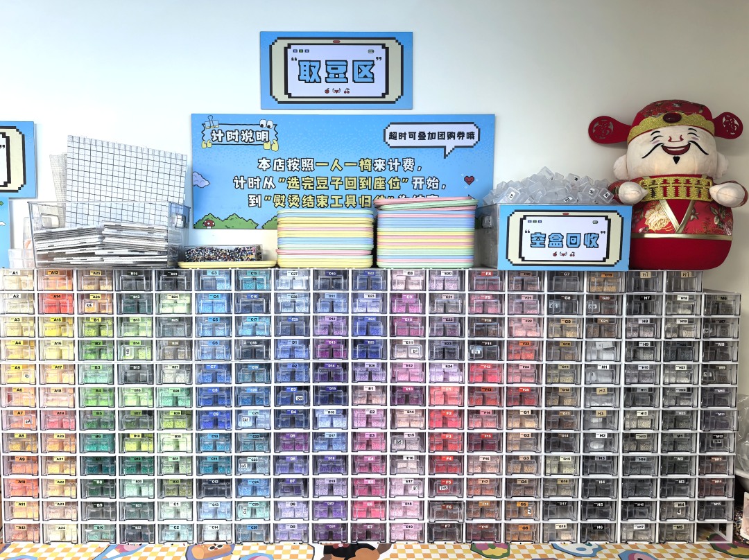张女士是这家店铺的主理人,她在2025年12月开了这家拼豆店,“我们店铺的经营模式主打24小时无人自助,我做好选品,供大家自由玩。”她表示,由于自己还有其他主业,所以选择了无人自助的模式经营拼豆店,“店里的工具摆放、物料高度、灯光调色、桌椅高度、豆子选品等细节,我都有仔细调整过,就是希望能够让顾客有一个良好的环境体验。”