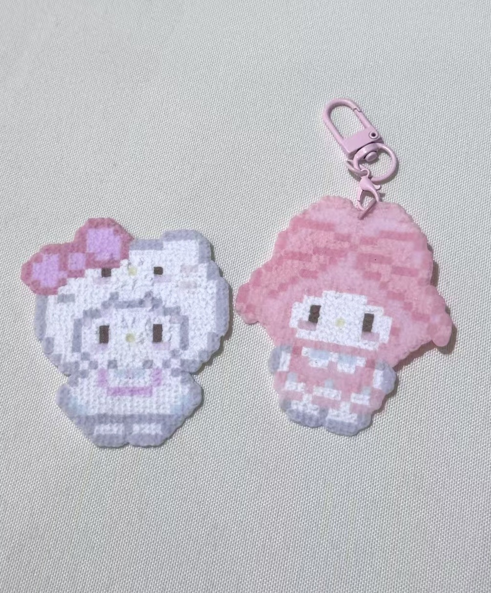 拼豆又叫熔融豆、像素画,是一种手工活动。其最早是用于锻炼精细动作和专注力的益智玩具。玩家将拼豆(一种彩色塑料小颗粒)按照设计图,一颗颗地排列在带孔的底板上,拼出各种图案和造型,最后经过加热熨烫,使颗粒熔化并粘合在一起,可以制作钥匙扣、挂件、冰箱贴等手工艺品。