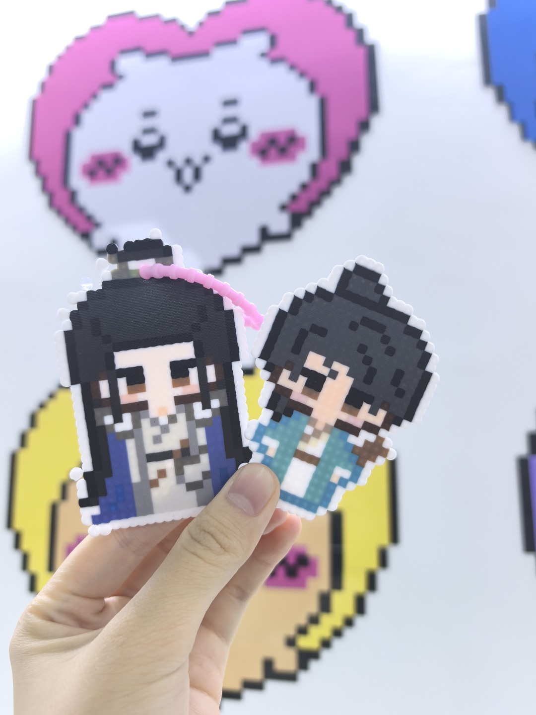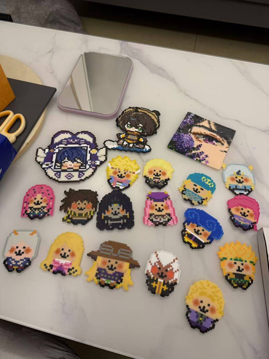 市民杨女士是一名拼豆“资深玩家”,2017年,她在朋友拜托下做了一套游戏的拼豆画,没想到自此“入坑”。“我本身就爱做手工,当时做完后还剩下不少拼豆,便又做了一些图案送给其他朋友。”杨女士表示,拼豆其实就是像素画,她一般拼卡通形象的二创造型或是小的插画图案,“因为我也喜欢画画,有时候还会拼自己画的原创图纸,相当于玩拼豆能享受到画画和手工两种乐趣。”令她印象深刻的是曾耗时一个月制作了一幅A4大小的人像拼豆,从拼接底板到放置拼豆再到熨烫,每天都小心翼翼,“虽然途中时不时数错格子,但最终还是坚持了下来,看到成品还是很有成就感的。”