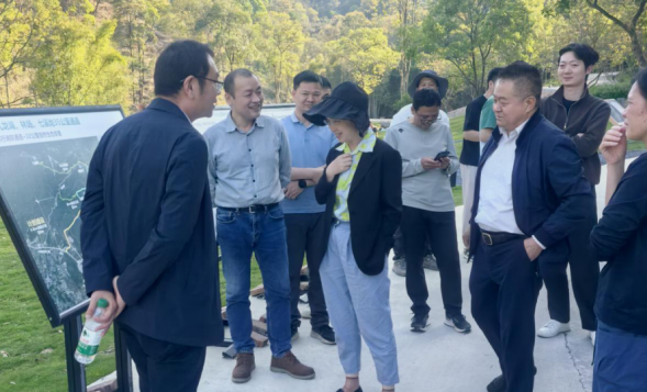 随后,调研组赴九湾潭林场绿美点,聚焦林场整体建设、森林步道规划及森林质量提升等核心工作展开调研。在林场内,一条10.5公里森林步道蜿蜒穿行,将分散的生态资源串珠成链;亲水活动场地通过生态驳岸建设和水系梳理,营造出自然野趣的滨水空间;两处生态节点同步完成景观亭建设和植物配置,为游客提供舒适的林间休憩环境。这些风貌提升项目不求大拆大建,而是以“绣花功夫”精雕细琢,让林场景观品质在润物无声中有效提升。