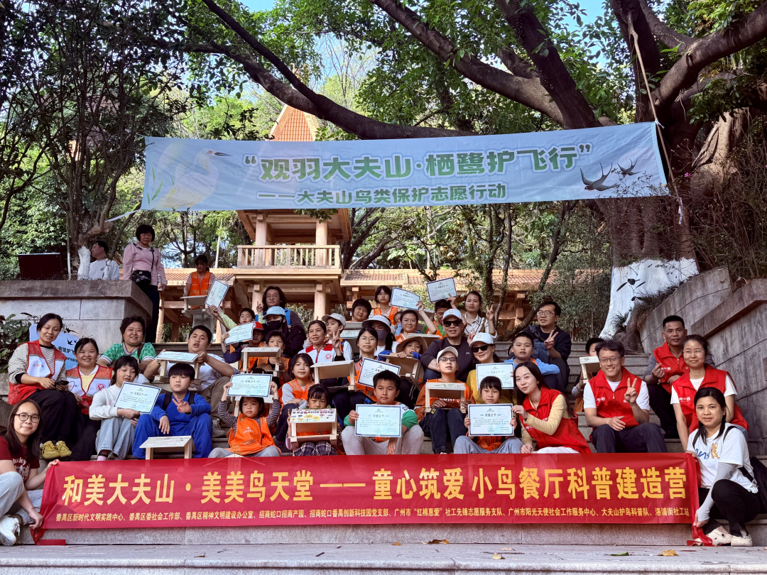 打破部门壁垒,构建“党建+社工+企业+志愿”多元协同机制。3月14日联动区新时代文明实践中心、区委社会工作部、广州市“红棉惠爱”社工先锋志愿服务支队及辖区企业等多方力量,在大夫山森林公园举办“童心筑爱小鸟餐厅”科普建造营活动。活动以“为野生小鸟建造春日餐厅”为载体,将生态科普、亲子协作与困境儿童社会融入有机融合,20对亲子家庭在社工引导下协作搭建鸟巢,实现了自然教育与社会关怀的“双向奔赴”。