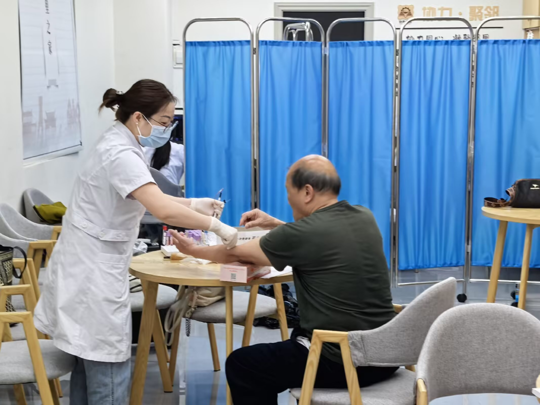3月26日的健康服务专场则联合西村街社区卫生服务中心,为65岁以上长者提供免费血压、血糖检测及心肺听诊等基础体检服务,同步开展中医义诊、贴耳穴、健康知识科普等项目,医护人员耐心为长者解读体检报告,并给出个性化的慢性病管理与养生调理建议。