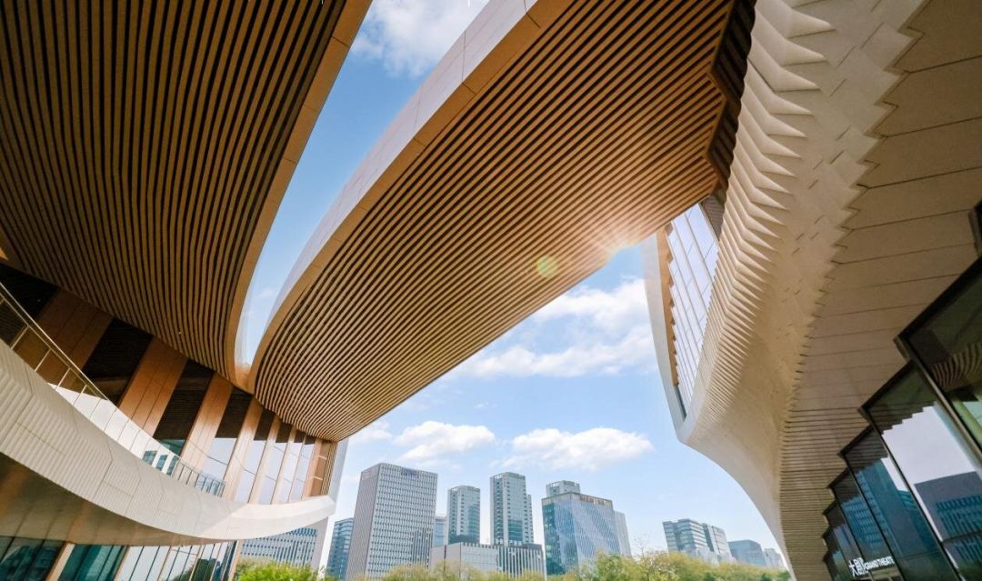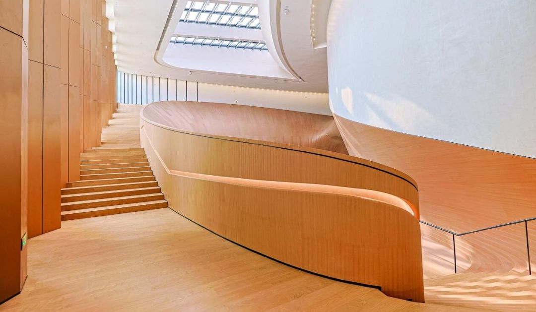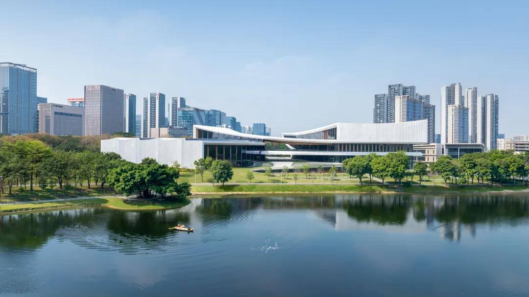 这座文化地标由国际顶尖建筑事务所扎哈·哈迪德建筑师事务所与北京市建筑设计研究院联袂打造,总建筑面积45000平方米。建筑形态以岭南“飞檐”为意象、粤剧“水袖”为语汇,将“枕山,听湖,水袖扬”的独特气质凝固为流动的建筑诗篇,流畅的曲线与松山湖的自然山水遥相呼应。