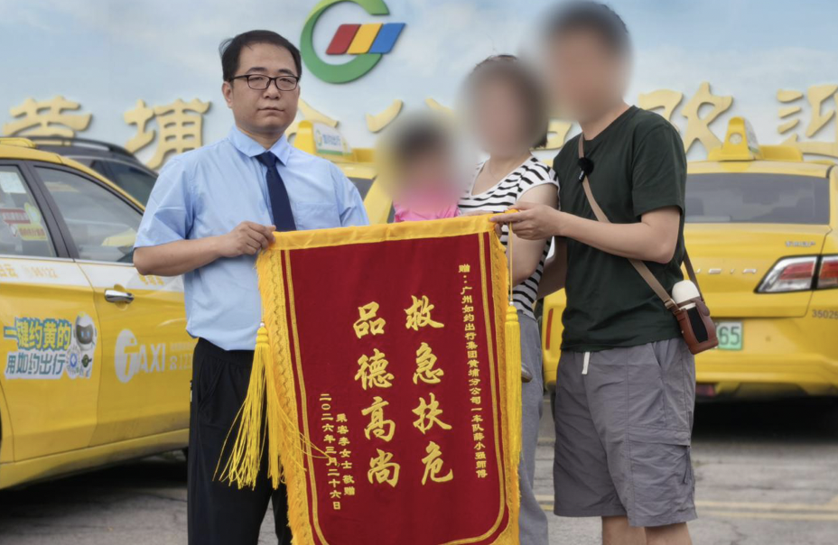 3月30日,市民梁先生带着妻子和女儿专程来到如约出行集团黄埔分公司,将一面印有“救急扶危,品德高尚”字样的锦旗亲手交到出租车司机薛小强手中,感谢他的帮助,为不慎摔伤的女儿争取了最大的救治时间。