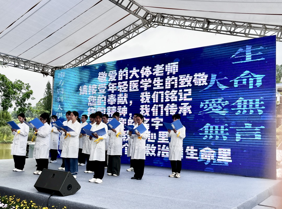 活动现场庄严肃穆,人们肃立默哀,追思那些以生命馈赠传递大爱的平凡英雄。中山市人民医院以沙画表演《生命·曙光》,用流动的艺术诠释生命的温度与希望的延续。省红十字会与光公益志愿服务队深情合唱《如愿》,用歌声传递思念与敬意。“您把自己交付给素不相识的人,让后来人看懂生命,学会如何守护生命。”南方医科大学医学生深情朗诵《希望·无言师恩》,致敬“无言良师”为医学事业发展作出的重要贡献,表达医学生传承大爱、守护生命的坚定信念。