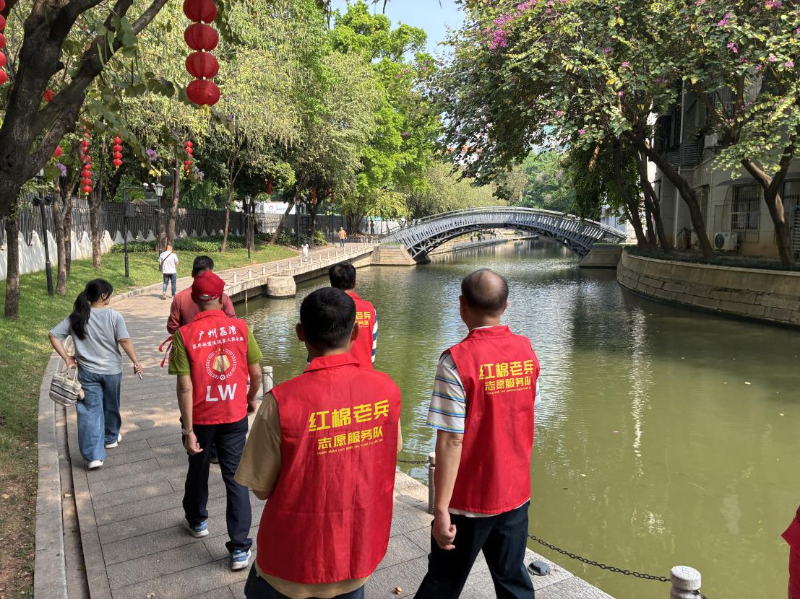 近日,昌华街道开展“守护荔枝湾涌碧水清波”活动。西关红棉老兵汤锦彪带领5名红棉老兵志愿者,沿荔枝湾涌开展巡河护河。