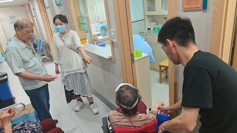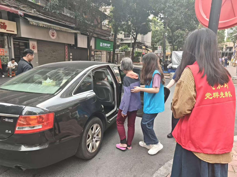 在第二次寻回何姨时,工作人员发现老人不慎摔倒,头部出现外伤出血,看着老人虚弱无助的模样,在场人员无不揪心。大家立即找来轮椅,小心翼翼地将老人搀扶坐稳,全程轻声安抚、细心陪护,第一时间护送老人前往社区卫生院处理伤口,止血消毒、包扎护理,确保伤情得到妥善处理。