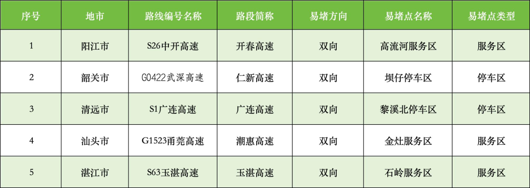 繁忙高速路段10处(含收费站1处)