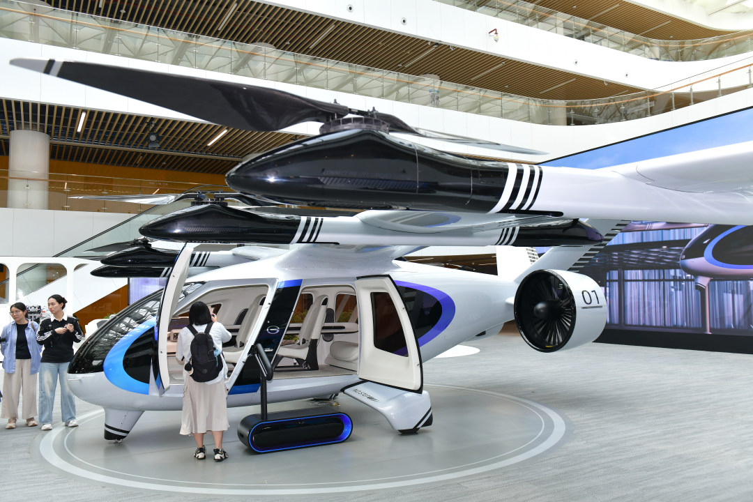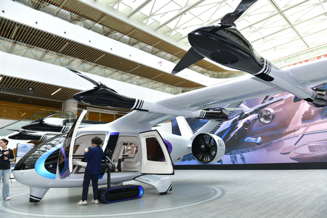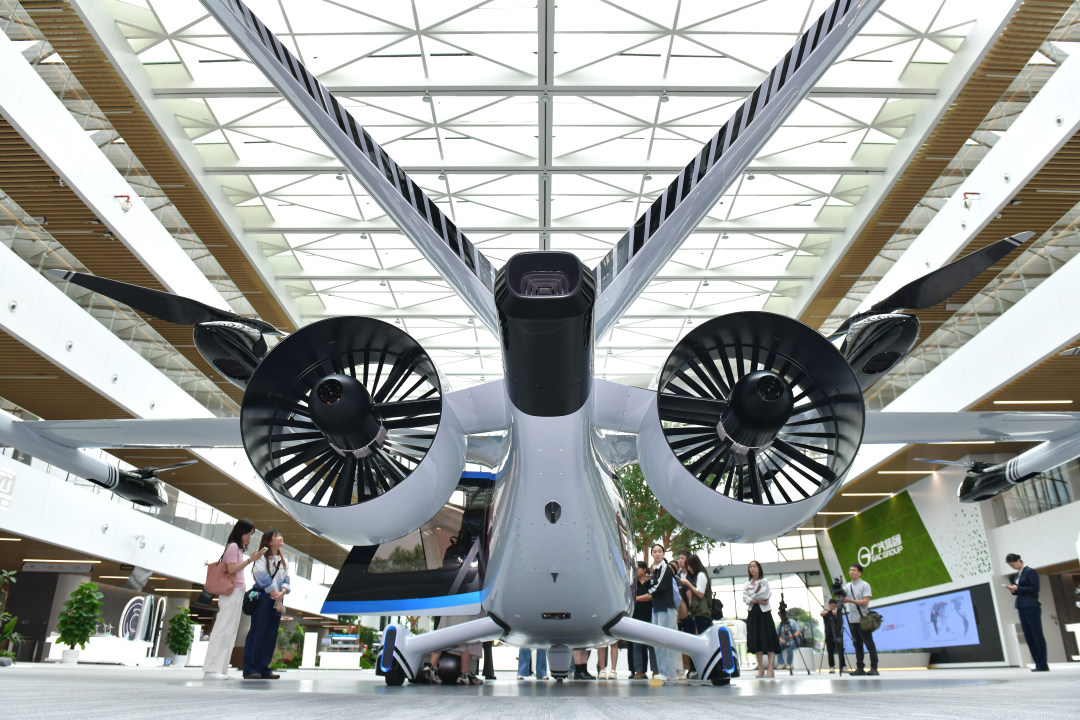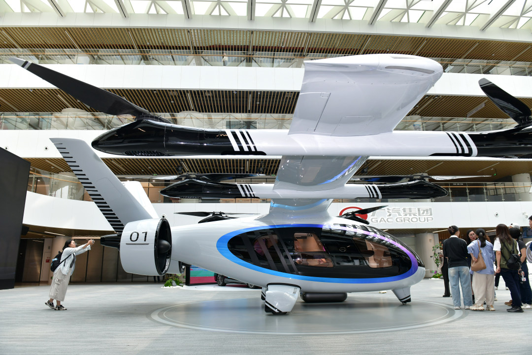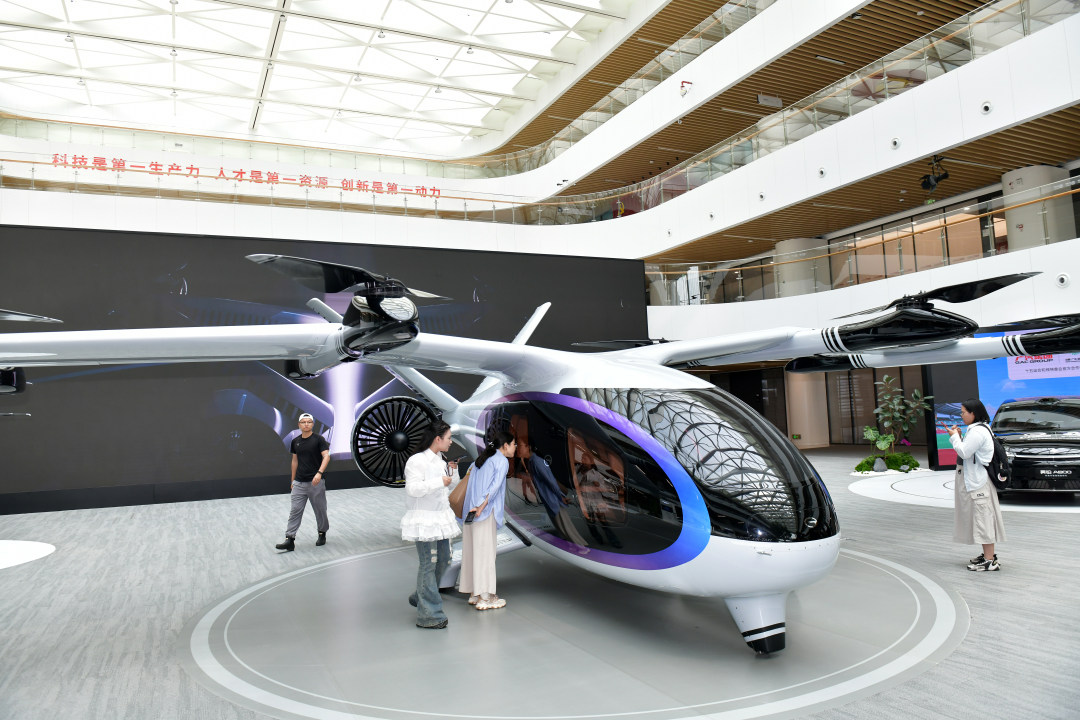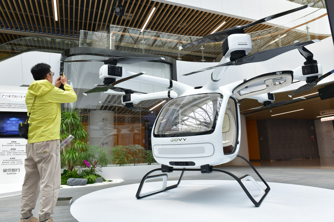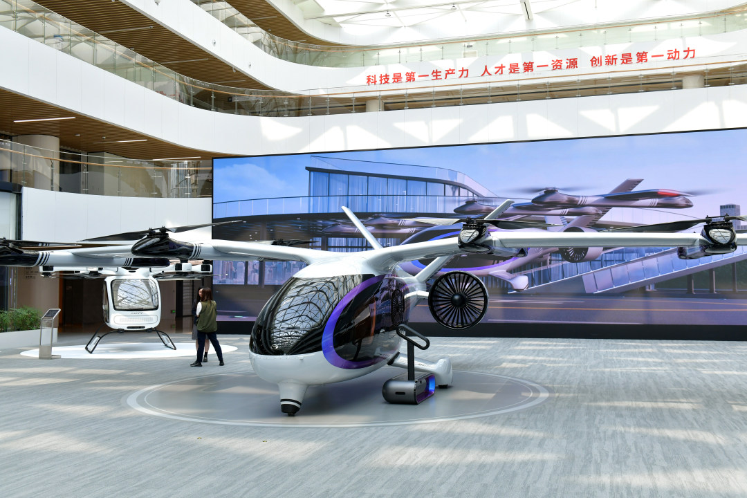 3月30日,记者跟随“科技广州新观察”活动走进广汽。图为广汽展厅里展示的载人飞行器。