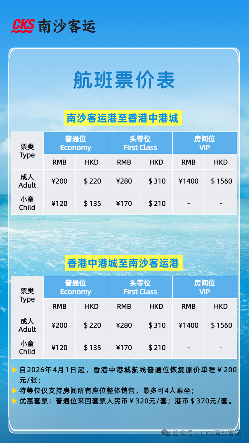 近日,伴随清明假期及香港公众假期临近,跨境出行客流持续攀升。为全力保障旅客顺畅出行、优化乘船体验,南沙客运港正式公布2026年4月1日至4月30日往返香港中港城、香港国际机场两大核心航线的最新航班安排。4月3日至7日为客流最高峰,目前部分热门班次船票已售罄,有出行计划的市民务必提前购票。