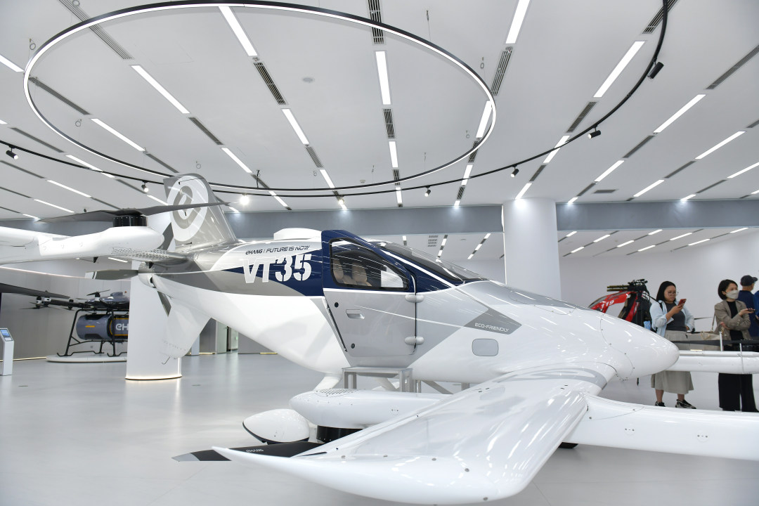 3月30日,在“科技广州新观察”系列采访活动中,记者走进亿航智能。图为亿航智能展厅里展示的VT-35。