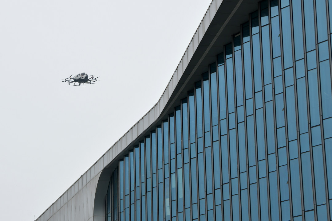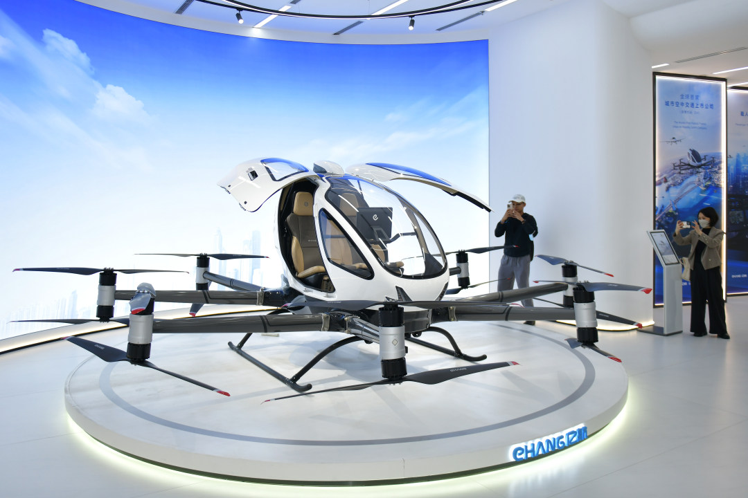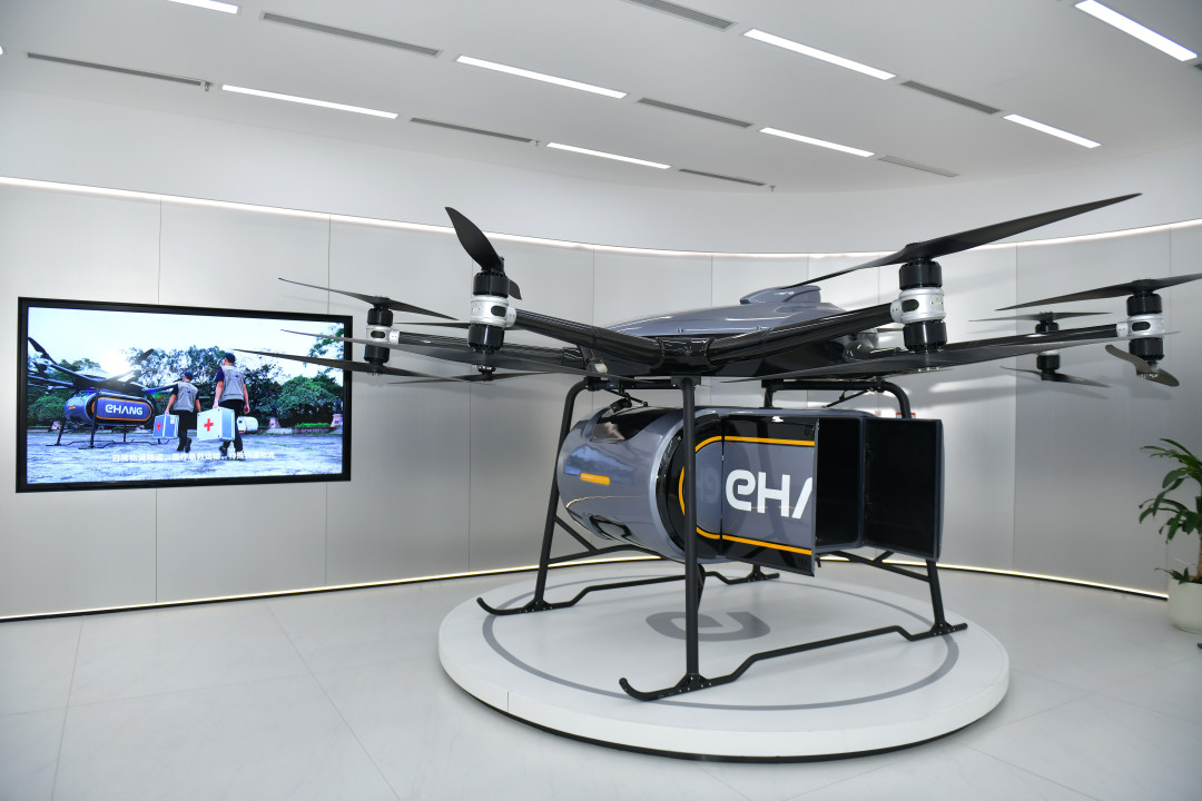 3月30日,在“科技广州新观察”系列采访活动中,记者走进亿航智能。图为亿航智能展厅展示的EH216-S。